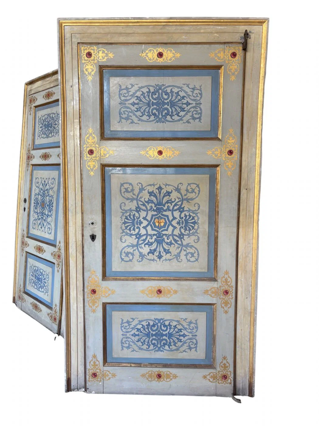 Coppia di ante dipinte anche sul retro con telaio di area lombarda ; cm. 89 x 210 ( 117 x 233 ) + cm. 79…